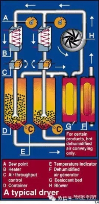 除了遵守正确的干燥温度外,确保在干燥空气中的露点低于负 20℃也很重要。使用填充高度和松密度不同的多容器的装置时,还应保证每一个容器都能达到充足的空气吞吐量。